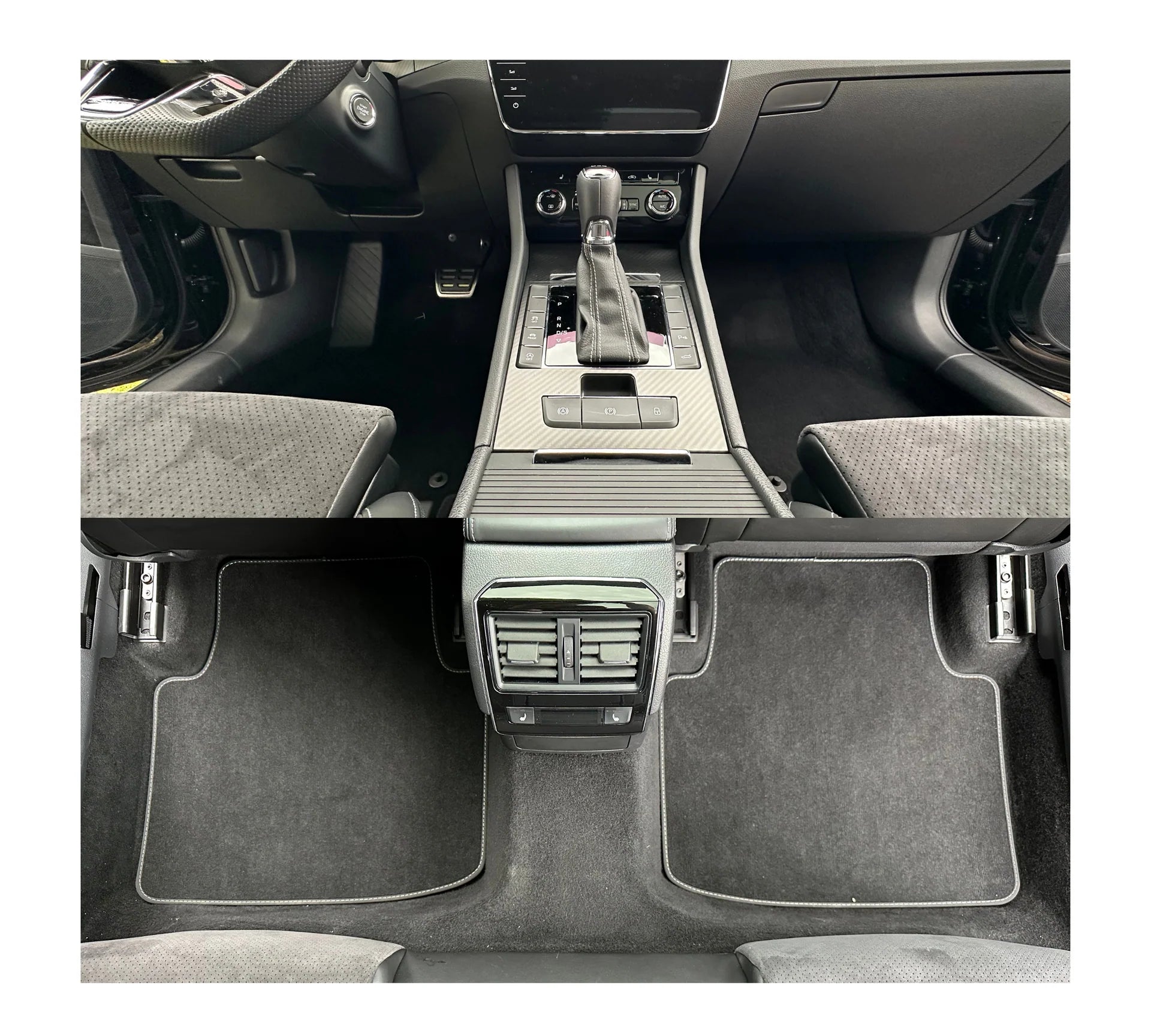 Was unsere maßgefertigten Fußmatten wirklich von herkömmlichen Hersteller-Matten unterscheidet, ist die besondere Liebe zum Detail und die hochwertigen Materialien, die wir verarbeiten. Die rutschfeste Unterseite sorgt dafür, dass die Matten sicher an ihrem Platz bleiben und niemals unter die Pedale geraten.